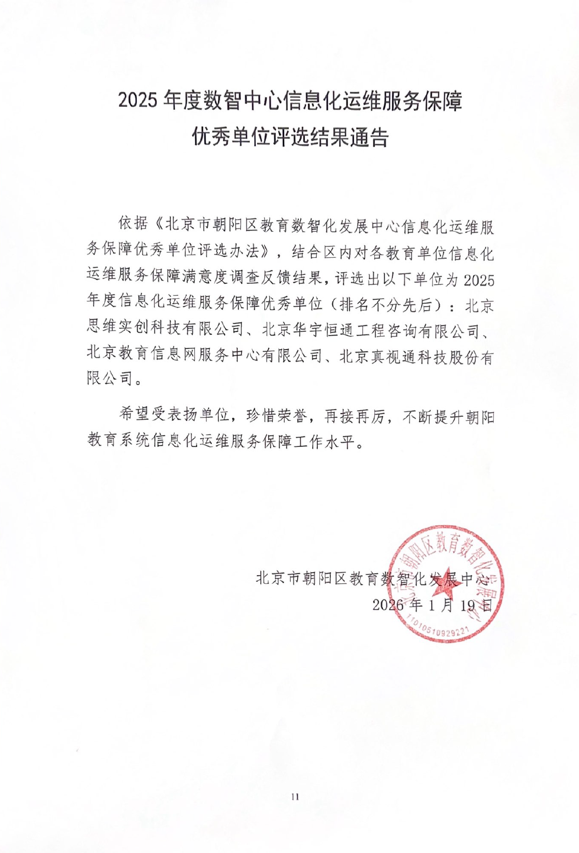 2025年度数智中心信息化运维服务保障优秀单位评选结果通告